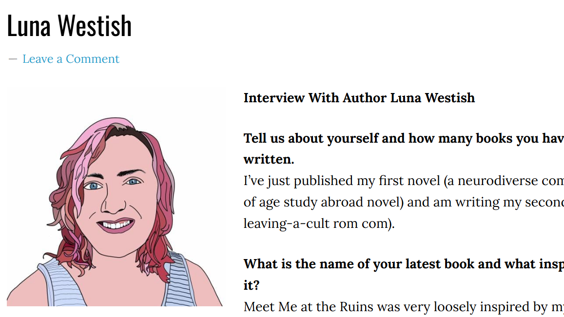 * Luna Westish is my pen name for fiction writing, as I write non-fiction elsewhere. I hope you’ll explore this website and reach out if you have any questions for me!